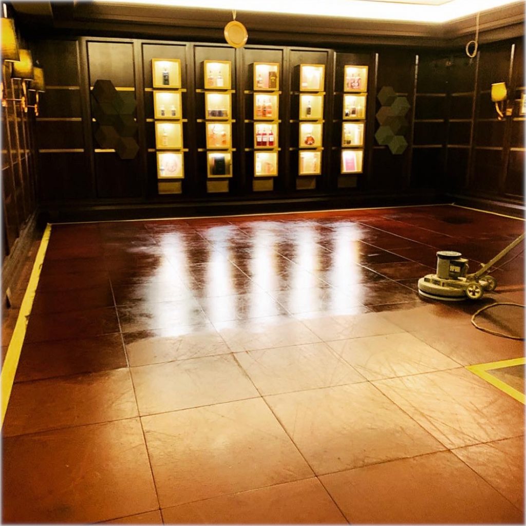 Ein ganz besonderes Projekt: In dieser exklusiven Zigarrenlounge durften wir einen außergewöhnlichen Bodenbelag bearbeiten – echten Lederboden. Durch die intensive Nutzung hatte der edle Boden über die Jahre an Glanz verloren und zeigte kleine Kratzer.