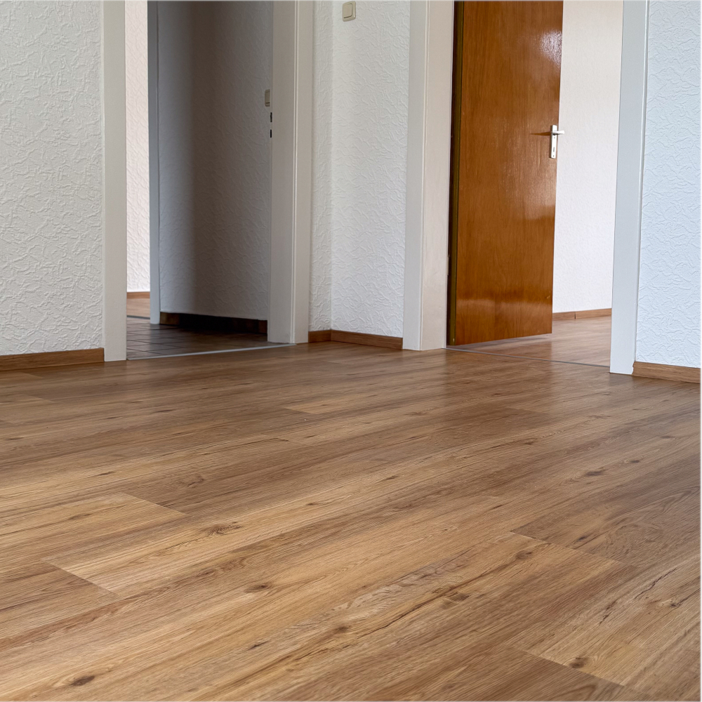 Dieser Vinylboden wurde in einer Mietwohnung verlegt – Ein klassisches Projekt, wie wir es regelmäßig für Privatkunden und Hausverwaltungen umsetzen: unkompliziert, langlebig und optisch ansprechend.