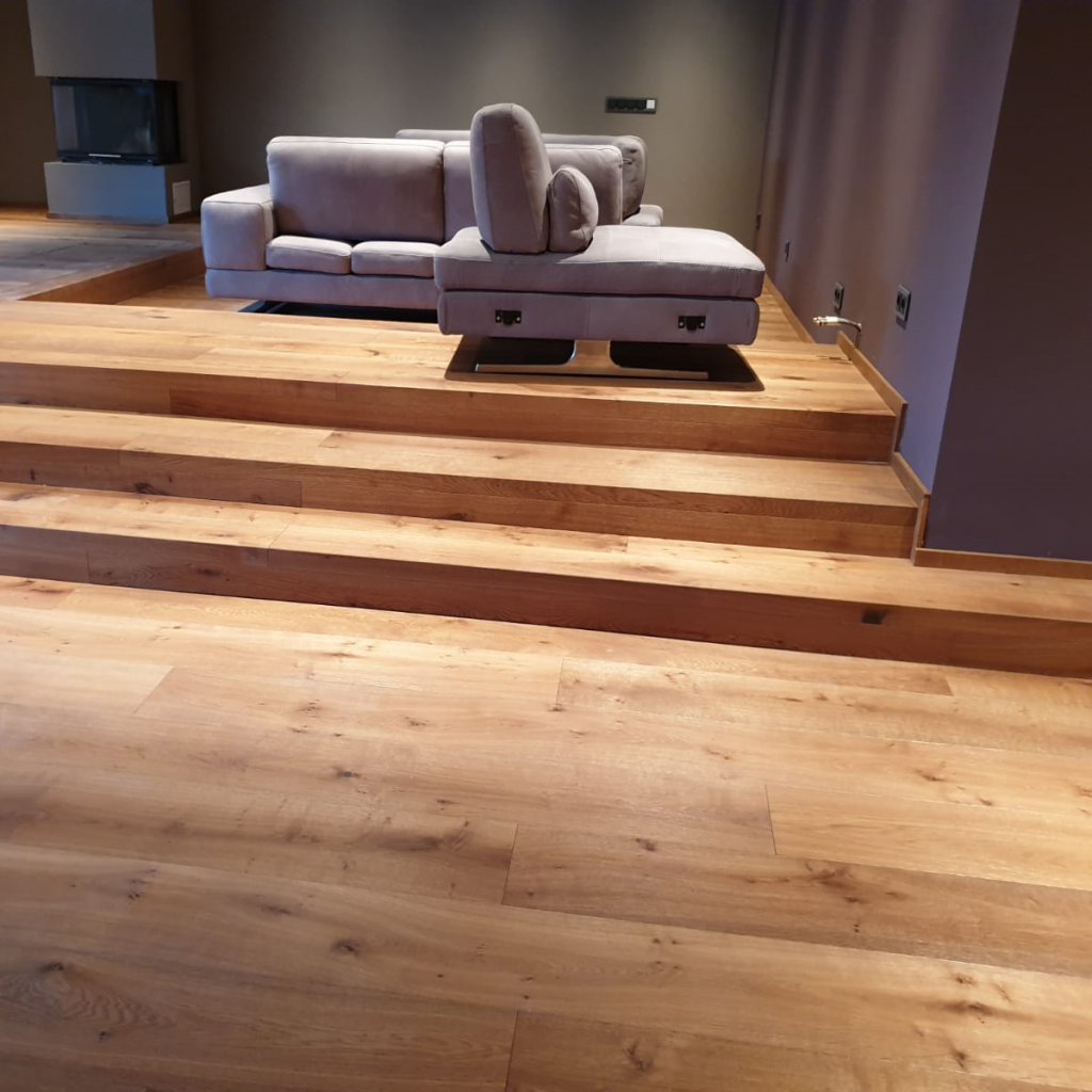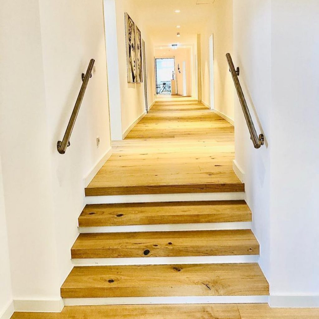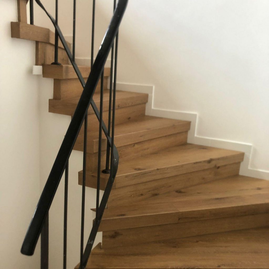 Treppen verbinden nicht nur Etagen – sie verbinden auch Räume, Stile und Materialien. Deshalb ist es umso schöner, wenn sie sich harmonisch ins Gesamtbild Ihres Zuhauses einfügen. Wir bieten Ihnen die Möglichkeit, Ihre geschlossene Treppenanlage mit dem gleichen Bodenbelag zu verkleiden, der auch im angrenzenden Raum verlegt wurde – sei es Parkett oder Vinyl.